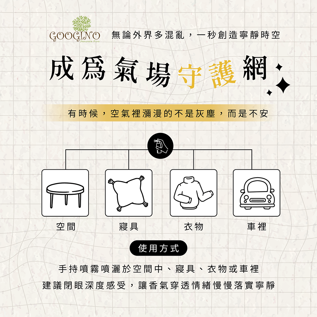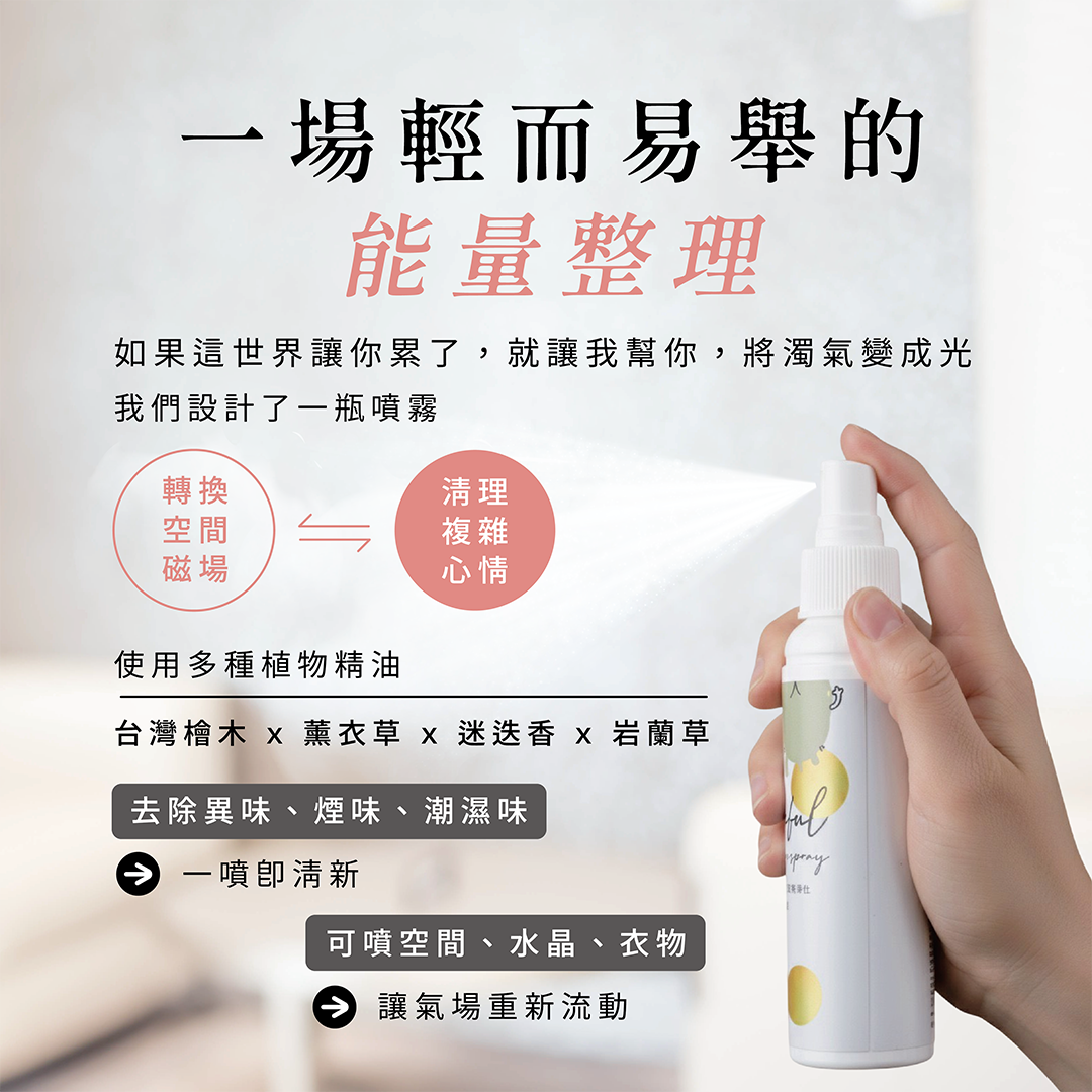 容 量:100ml 製造日期與批號:標示於瓶身。 保存期限:未開封三年,開封後一年。 保存方法:請至於陰涼通風處,避免陽光 直接照射。 注意事項:請避免直接使用於傷口或皮膚異常部位,使用時若不小心滴落眼睛,請立即以大量清水沖洗,嚴重時請儘速就醫。